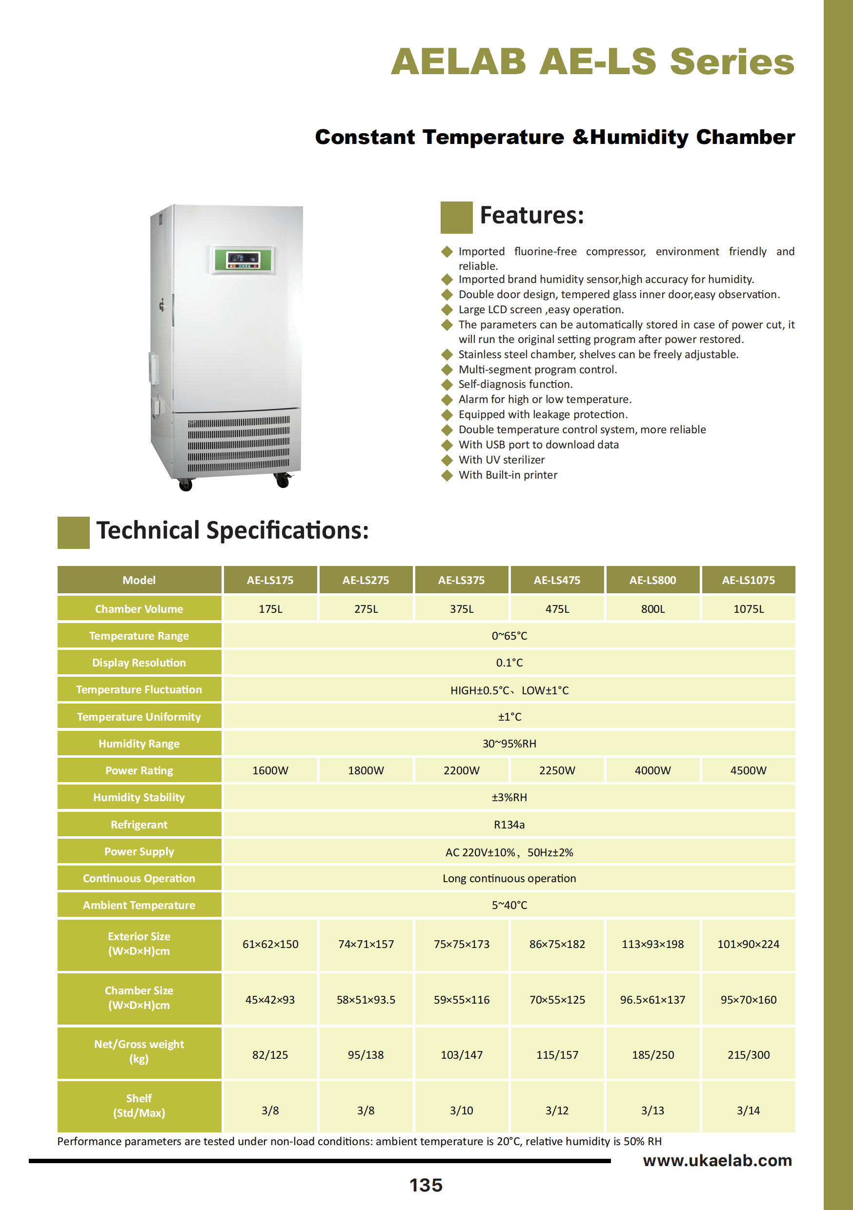 | AE-LS175 | 175L | 0~65°C | 30~95%RH | 1600W |