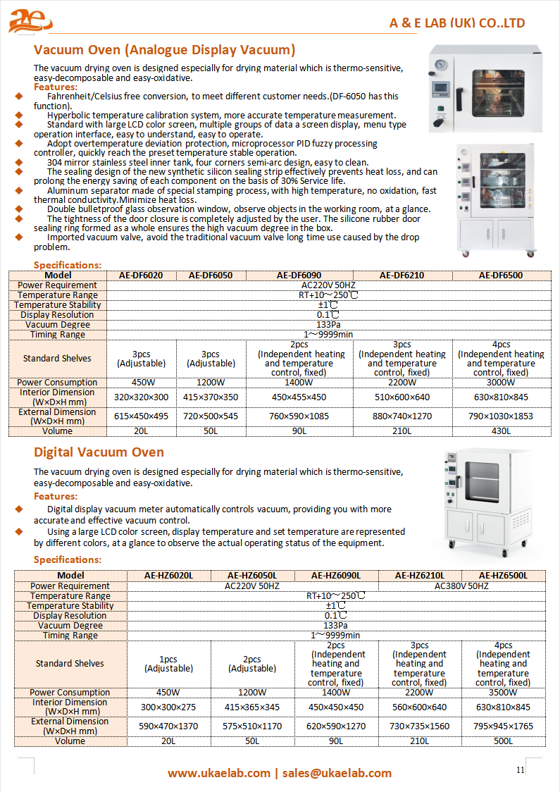 The AELAB Digital Vacuum Oven AE-HZ6020L Series delivers accurate and uniform drying in a controlled low-pressure environment. With advanced digital control and LCD display, it's engineered for professionals seeking precision, consistency, and reliability in laboratory or industrial processes.