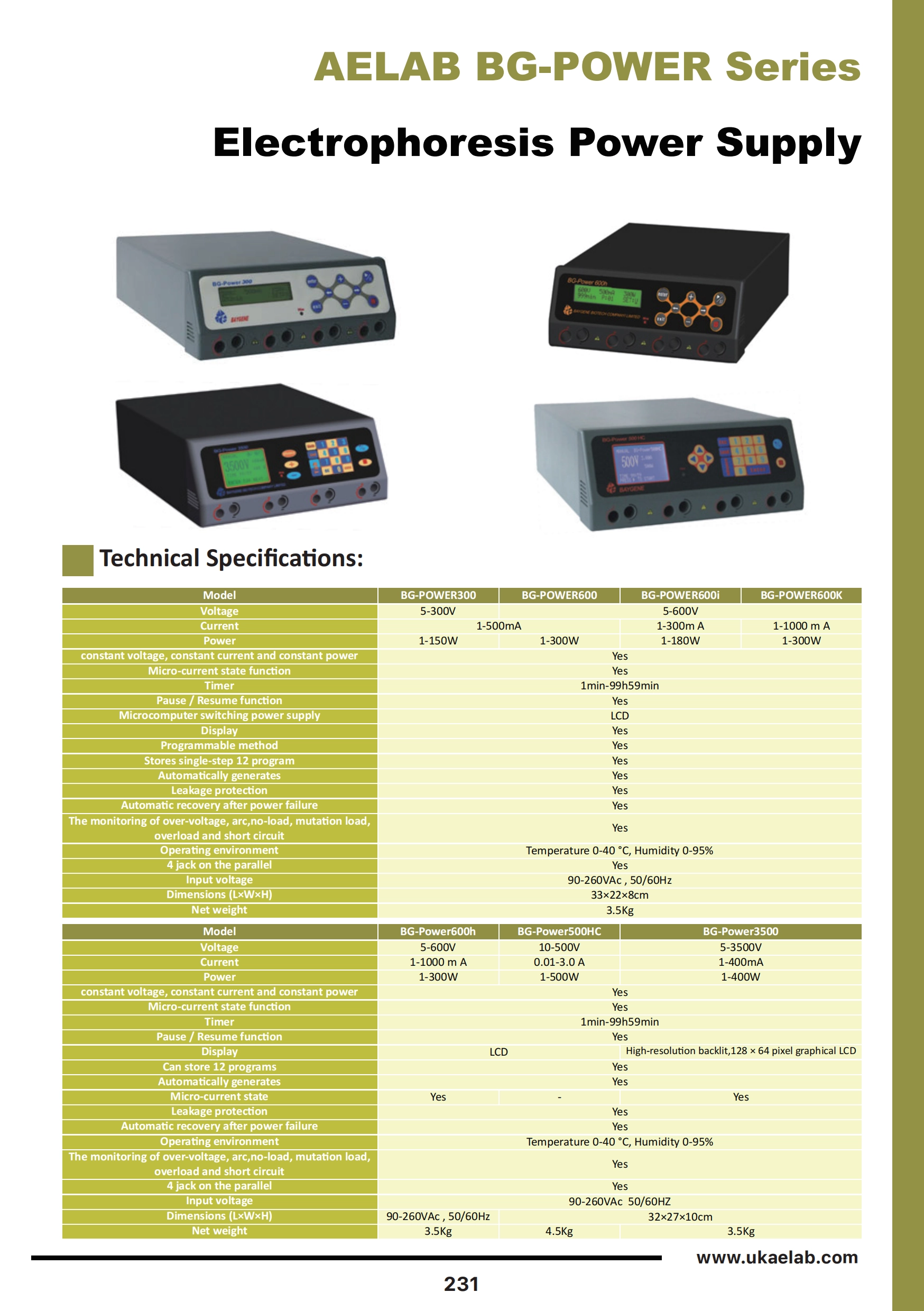 BG-POWER300: Ideal for standard gel electrophoresis in teaching labs and routine research.