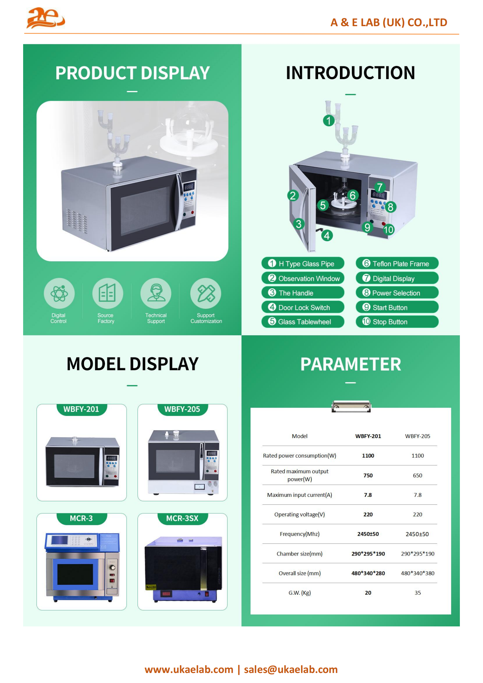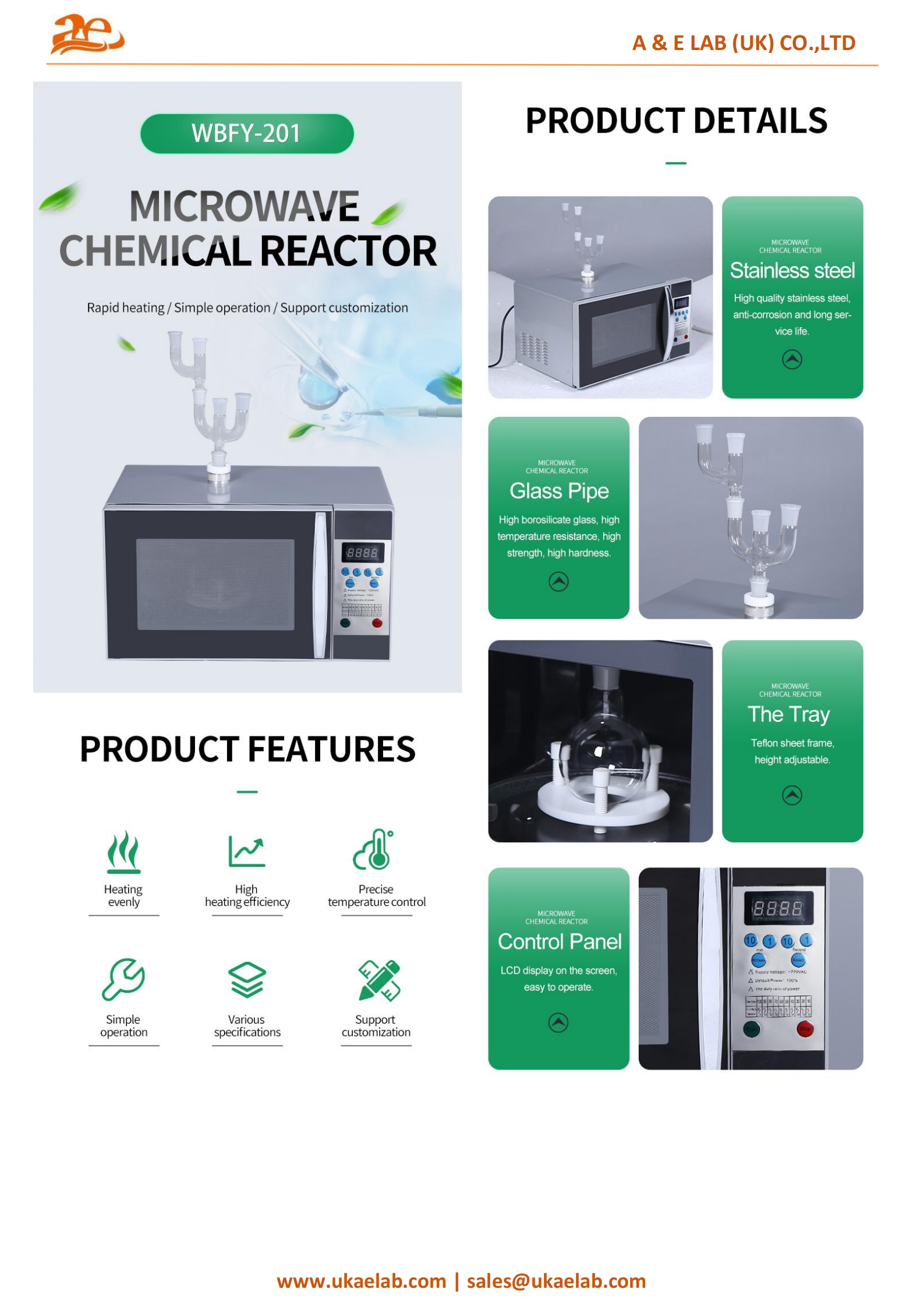 The WBFY-201 Microwave Chemical Reactor is a durable and efficient system designed for precise chemical reactions. Constructed from high-quality stainless steel, it is corrosion-resistant and built for long service life. The reactor features a high borosilicate glass pipe with excellent temperature resistance, strength, and hardness, along with a height-adjustable Teflon shelf frame for flexibility. Its easy-to-use LCD control panel includes a digital display, power selection, and a start button. Key features like the H-type glass pipe, observation window, handle, door lock switch, and Teflon plate frame enhance safety and functionality. The reactor ensures even heating, high heating efficiency, and precise temperature control. It is customizable to various specifications, making it ideal for controlled chemical reactions.