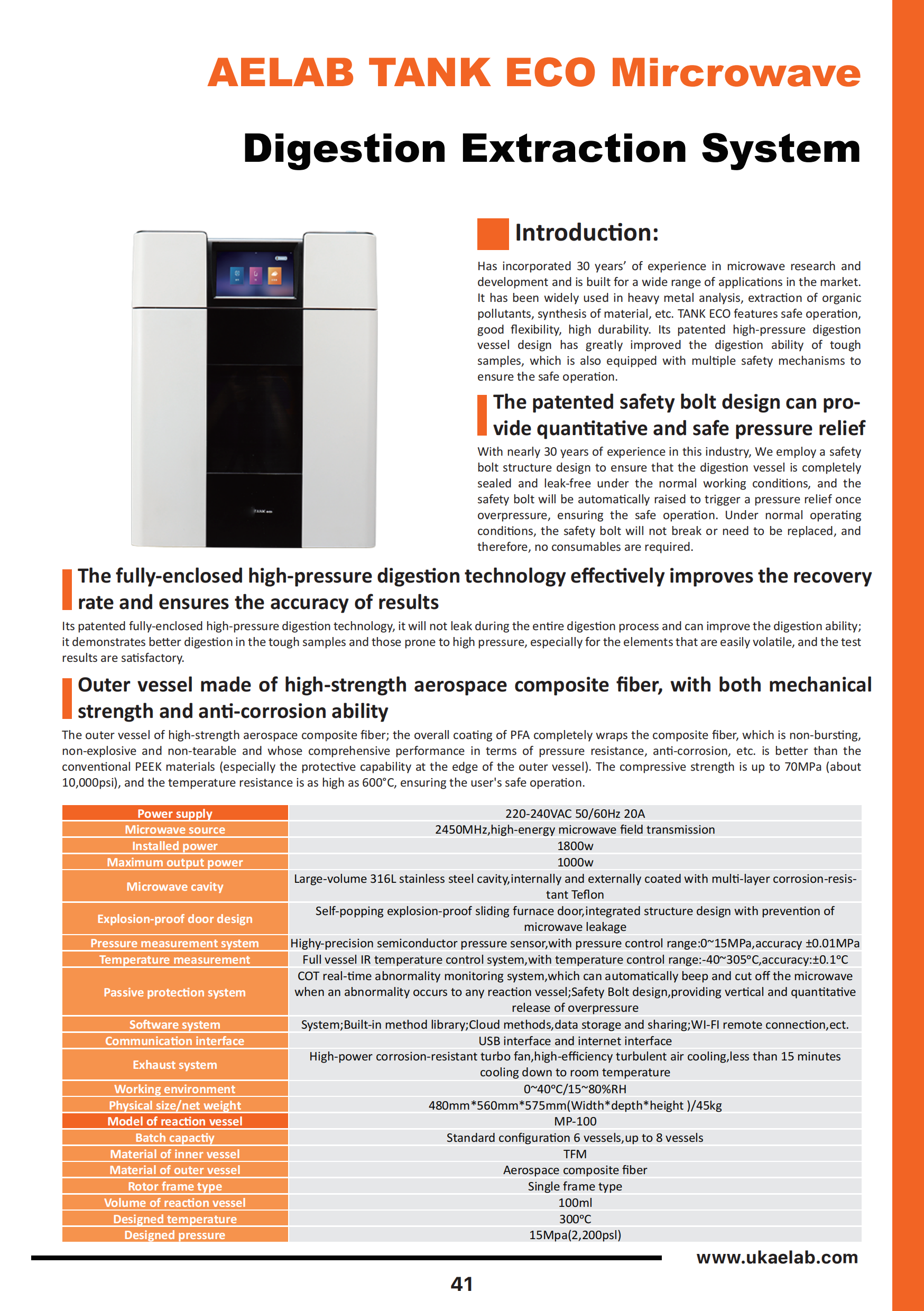 | Passive protection system | COT real-time abnormality monitoring system,which can automatically beep and cut off the microwave when an abnormality occurs to any reaction vessel; Safety Bolt design,providing vertical and quantitative release of overpressure |