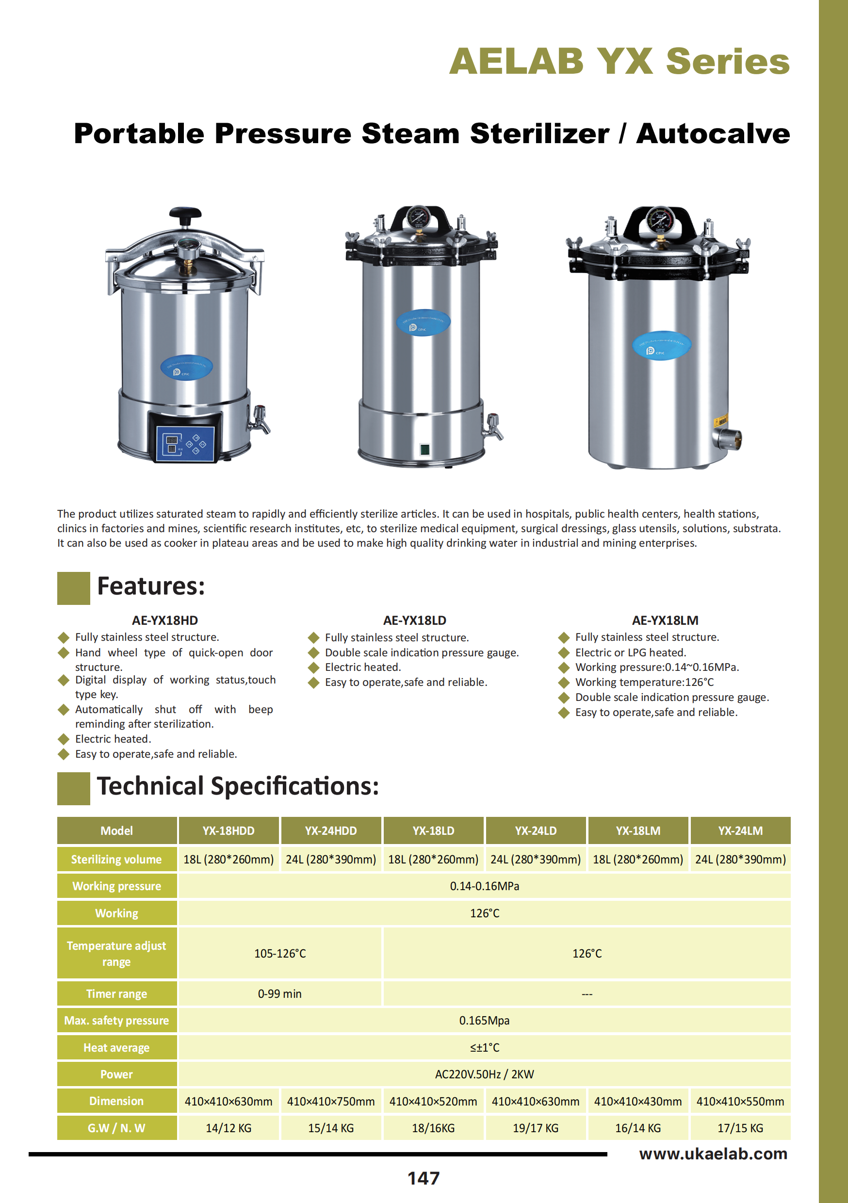 The YX series autoclave operates by generating steam under high pressure, which effectively kills bacteria, viruses, and other microorganisms. The process involves heating water to produce steam, which is then pressurized within the chamber to achieve the required temperature for sterilization. The device is equipped with controls to set and monitor the pressure, temperature, and duration of the sterilization cycle.