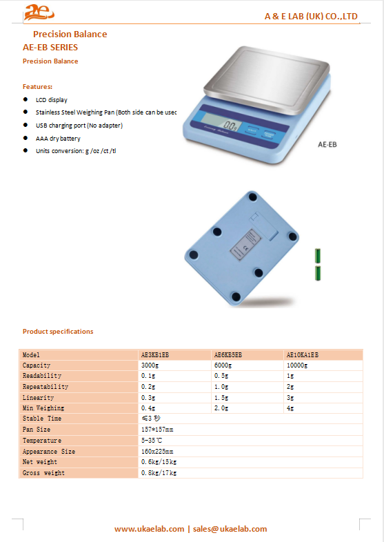 AE10KA1EB (10000g / 1g readability) – Suited for manufacturing and quality control settings needing high-capacity yet consistent measurements.