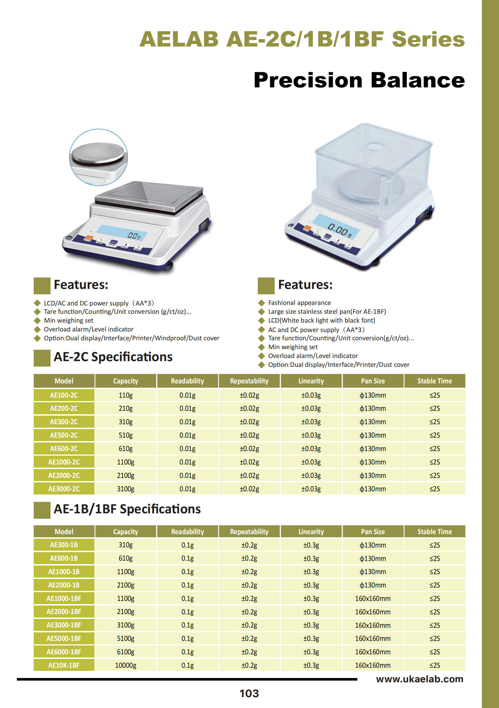 | Model | Capacity | Readability | Repeatability | Linearity | Pan Size | Stable Time |
