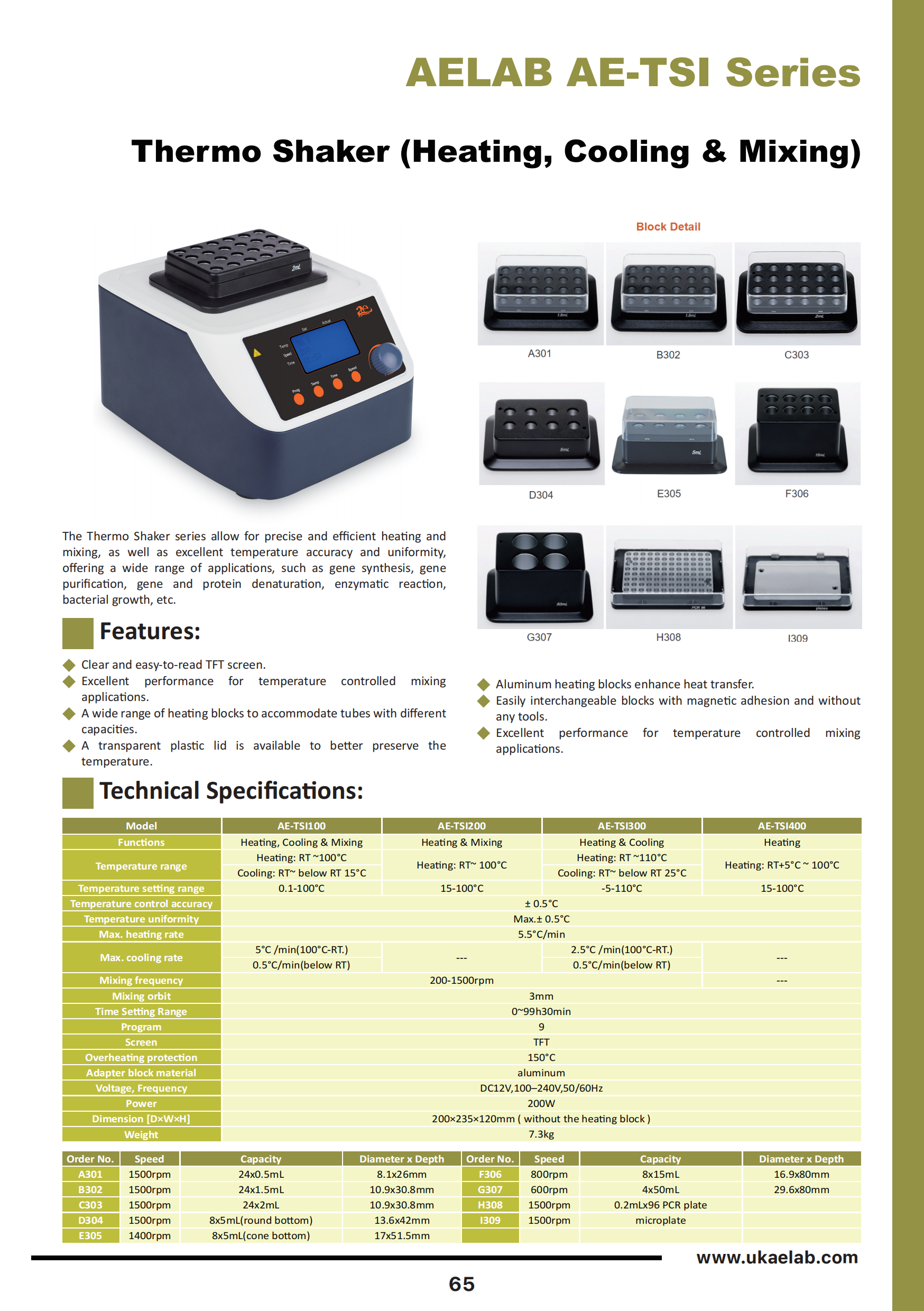 AE-TSI100: Best for molecular biology labs needing both heating & cooling with mixing.