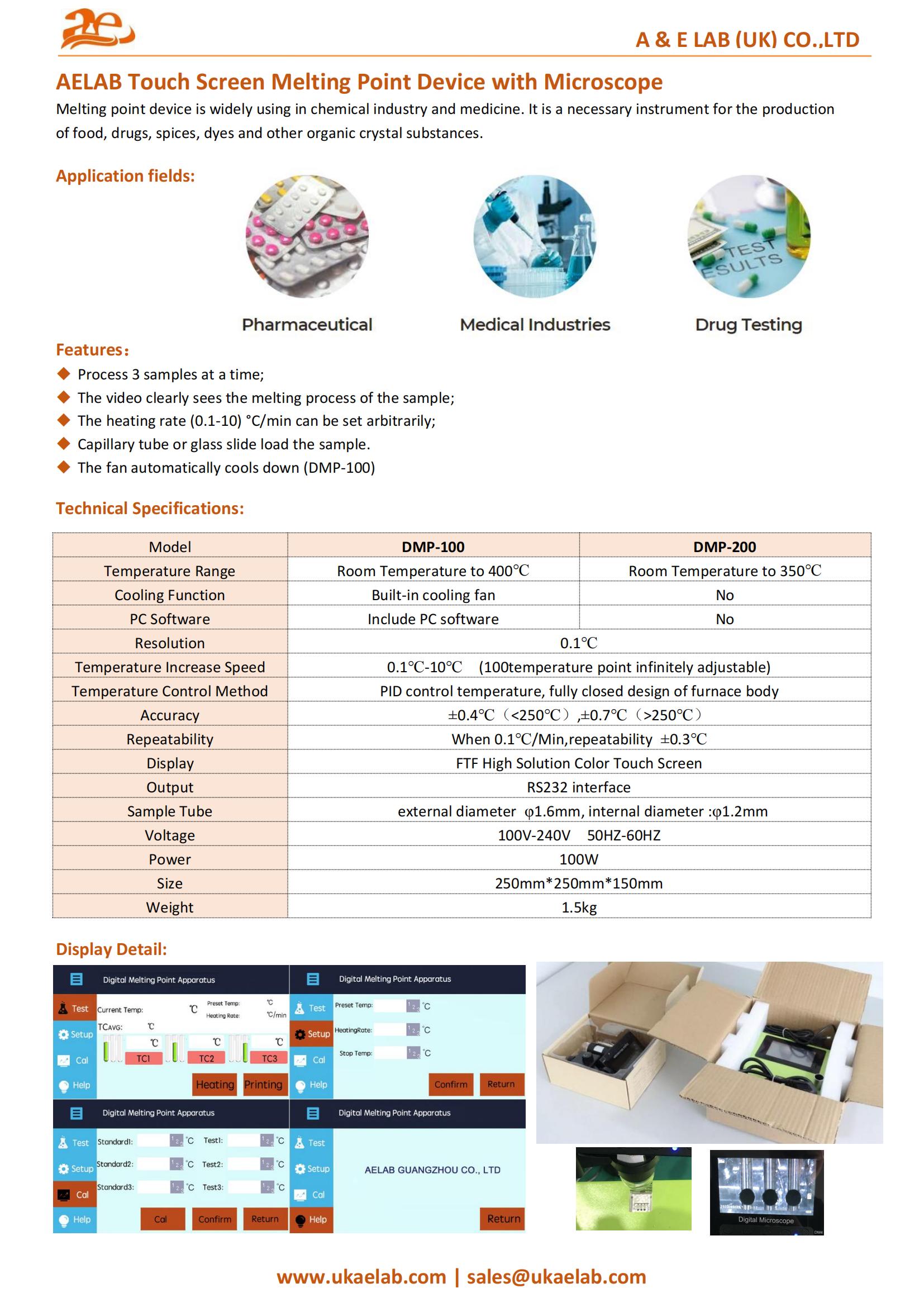 The AELAB Touch Screen Melting Point Device with Microscope delivers accurate melting point determination with advanced imaging and temperature control. Designed for chemistry, pharmaceuticals, and quality control labs, it ensures precision, repeatability, and user-friendly operation.