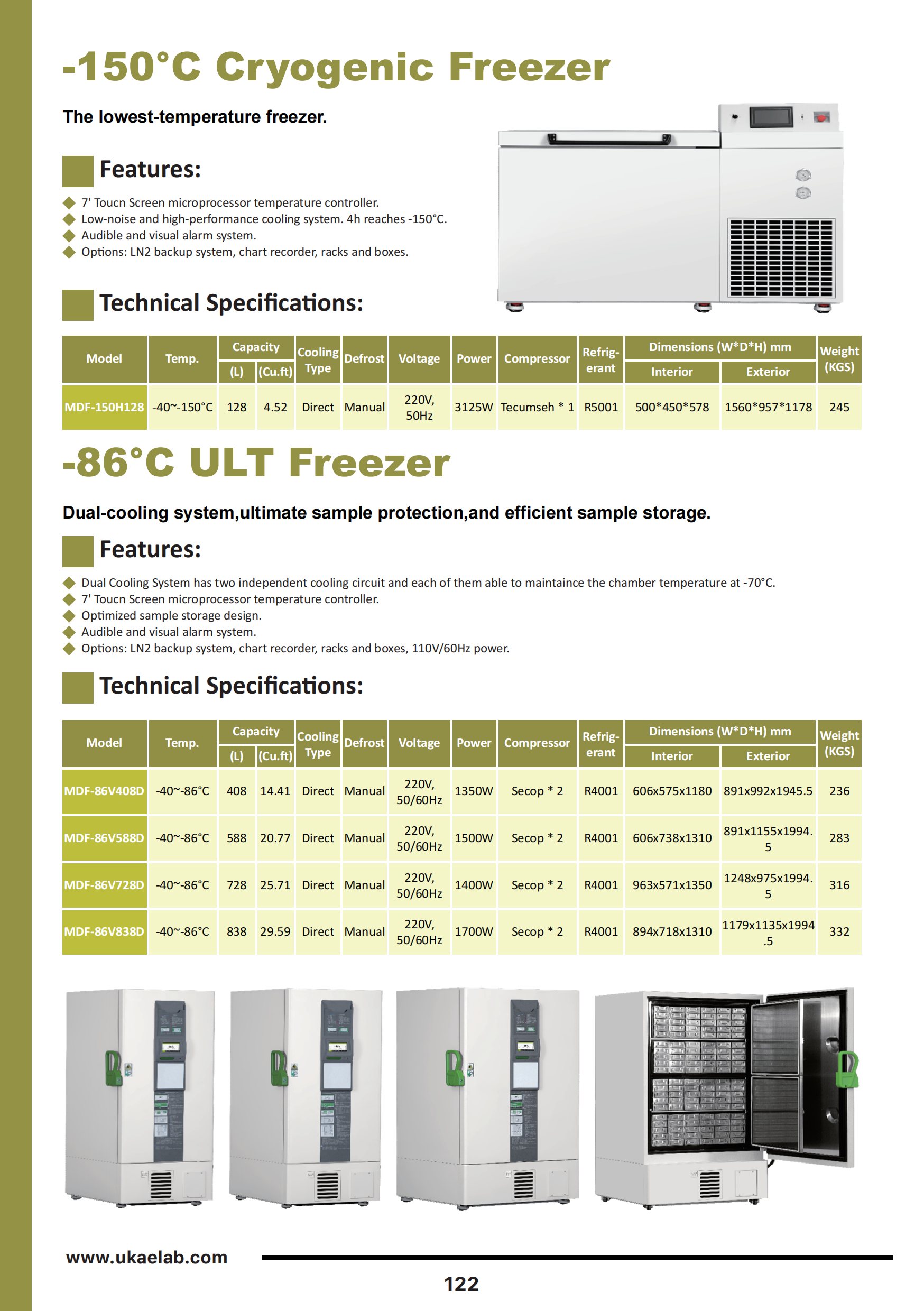 • MDF-86V408D (408L) — ideal for small to medium research labs and clinical storage