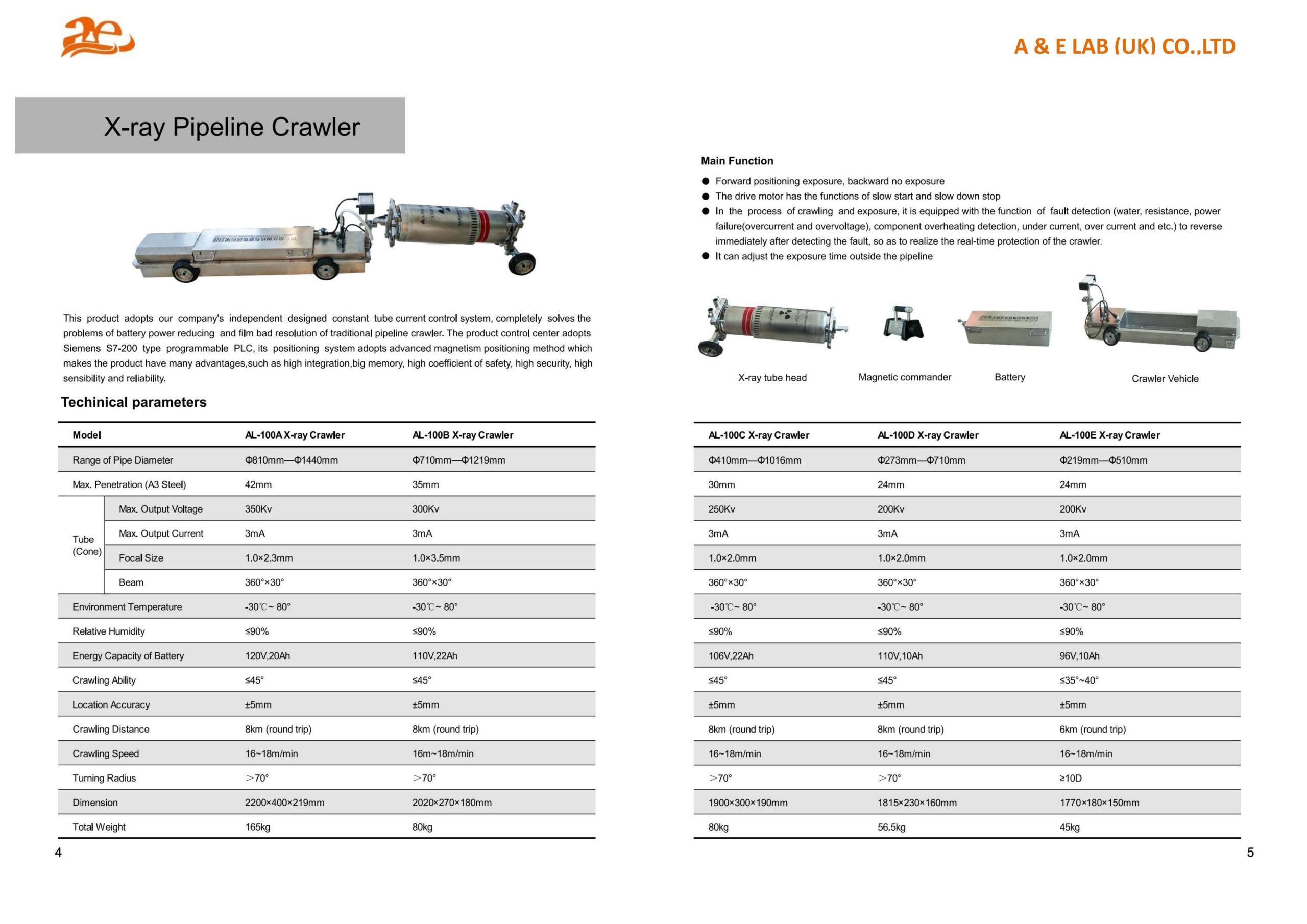 | Model | AL-100C X-ray Crawler | AL-100D X-ray Crawler | AL-100E X-ray Crawler |